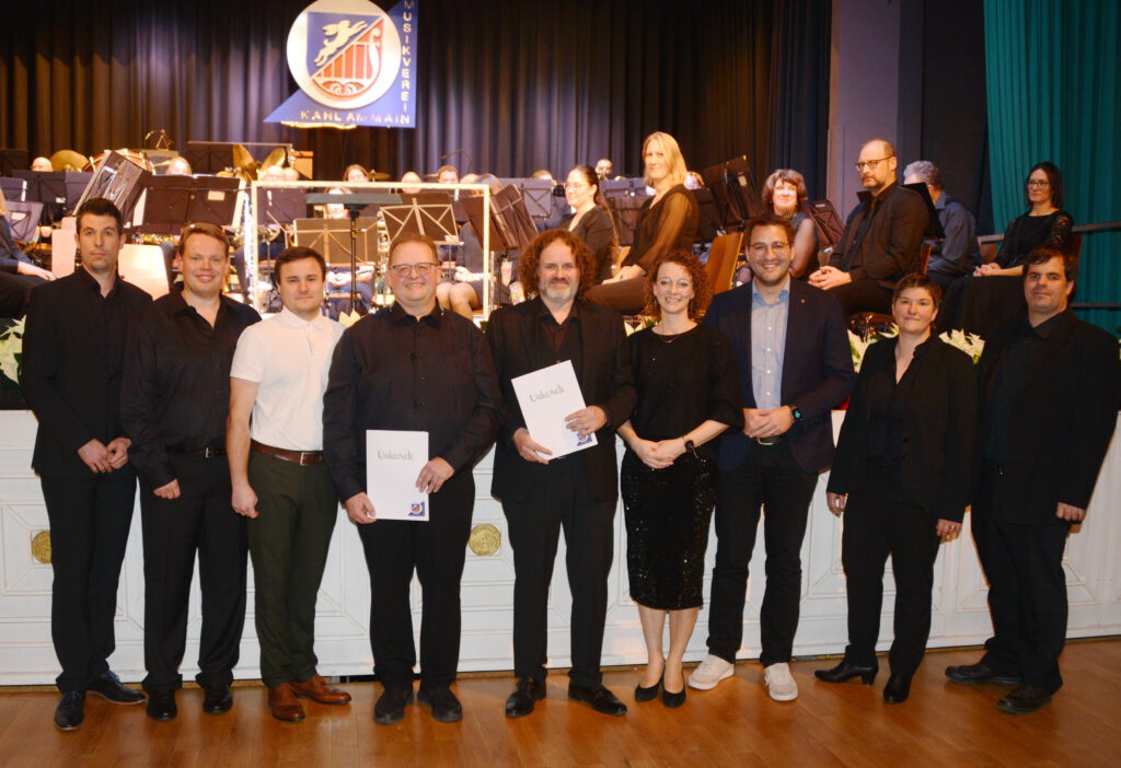 Eine besondere Würdigung rundete den Abend ab: Als Überraschung hatte der Vorstand des Musikvereins Kahl eine besondere Ehrung ins Konzertgeschehen eingebaut: Bürgermeisterin Julia Fischer proklamierten die Ernennung der Musikerpioniere Dieter und Peter Duzak zu Ehrenmitgliedern des Vereins.